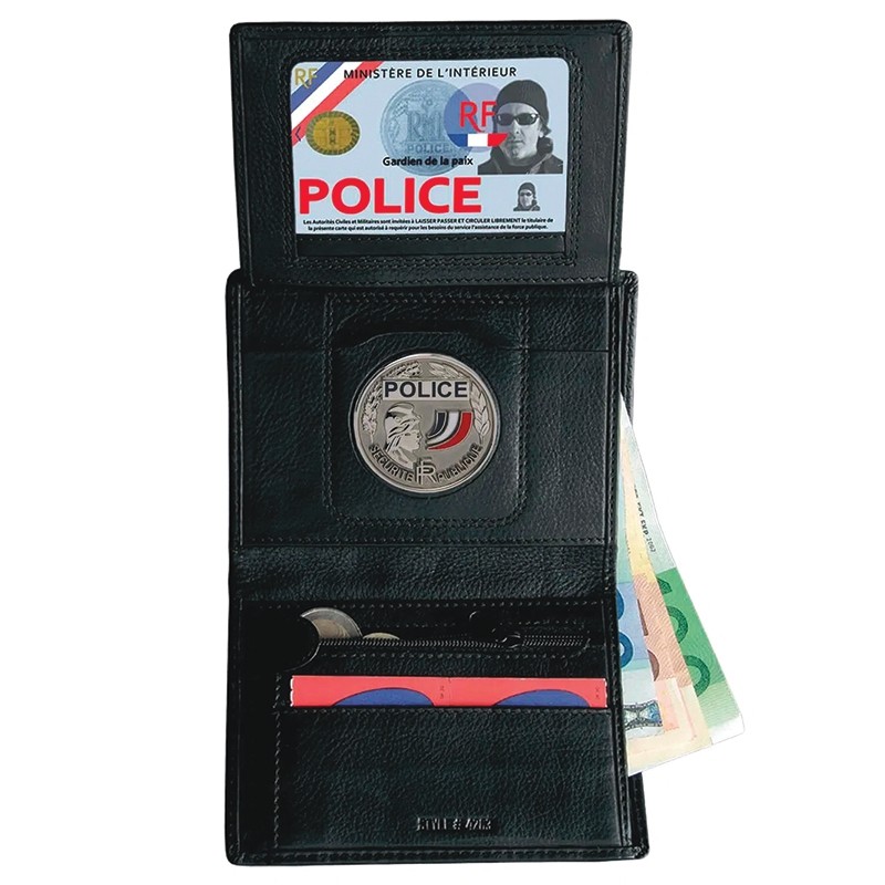 Ce portefeuille noir à trois volets est conçu pour répondre aux besoins des forces de l’ordre, offrant à la fois praticité et sécurité aux policiers et gendarmes en service. Compact et fonctionnel, il mesure 100 x 135 mm une fois replié, facilitant son transport au quotidien.
