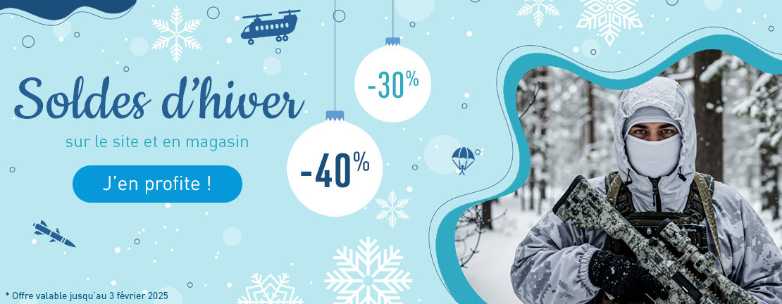 Notre magasin vend également du matériel provenant de surplus militaires. Ces vêtements et équipements bénéficient des normes CE et nous proposons plusieurs type de camouflages : CCE (Camouflage Centre Européen de l'armée), tropic, desert, multicam ou encore le célèbre ghillie pour les tireurs d'élite.
